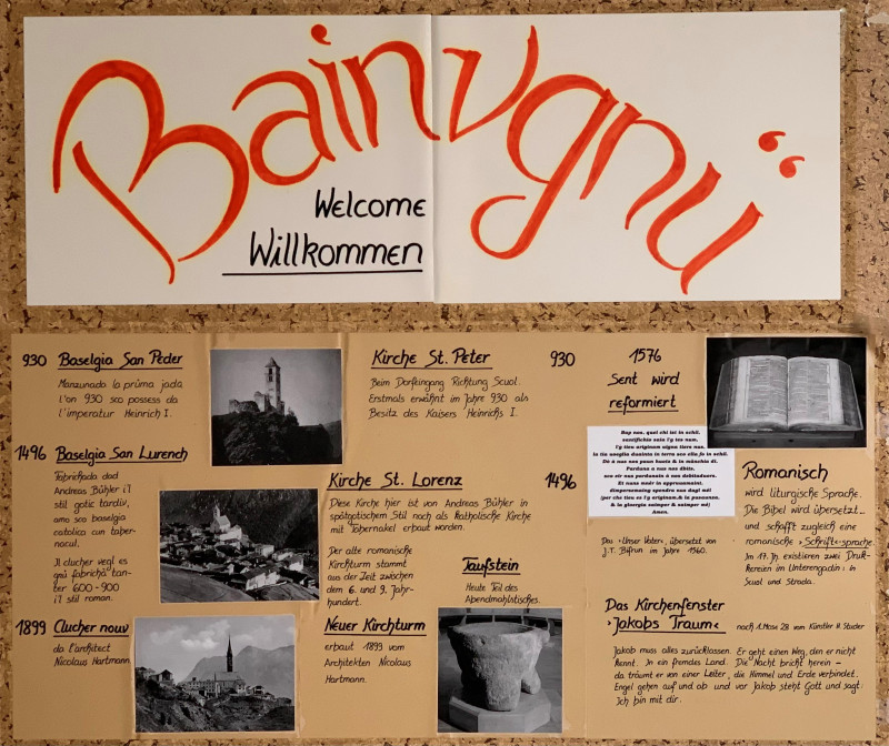 Die Dorfkirche San Lurench (St. Lorenz) wurde im 1496 als katholische Kirche im spätgotischen "Bündnerstil" erbaut. Sie ersetzte eine kleine Schwester aus dem 13. Jahrhundert. Die Bauleitung hatte Meister Andreas Bühler, der auch bei anderen Kirchenbauten in Graubünden mitgewirkt hat.